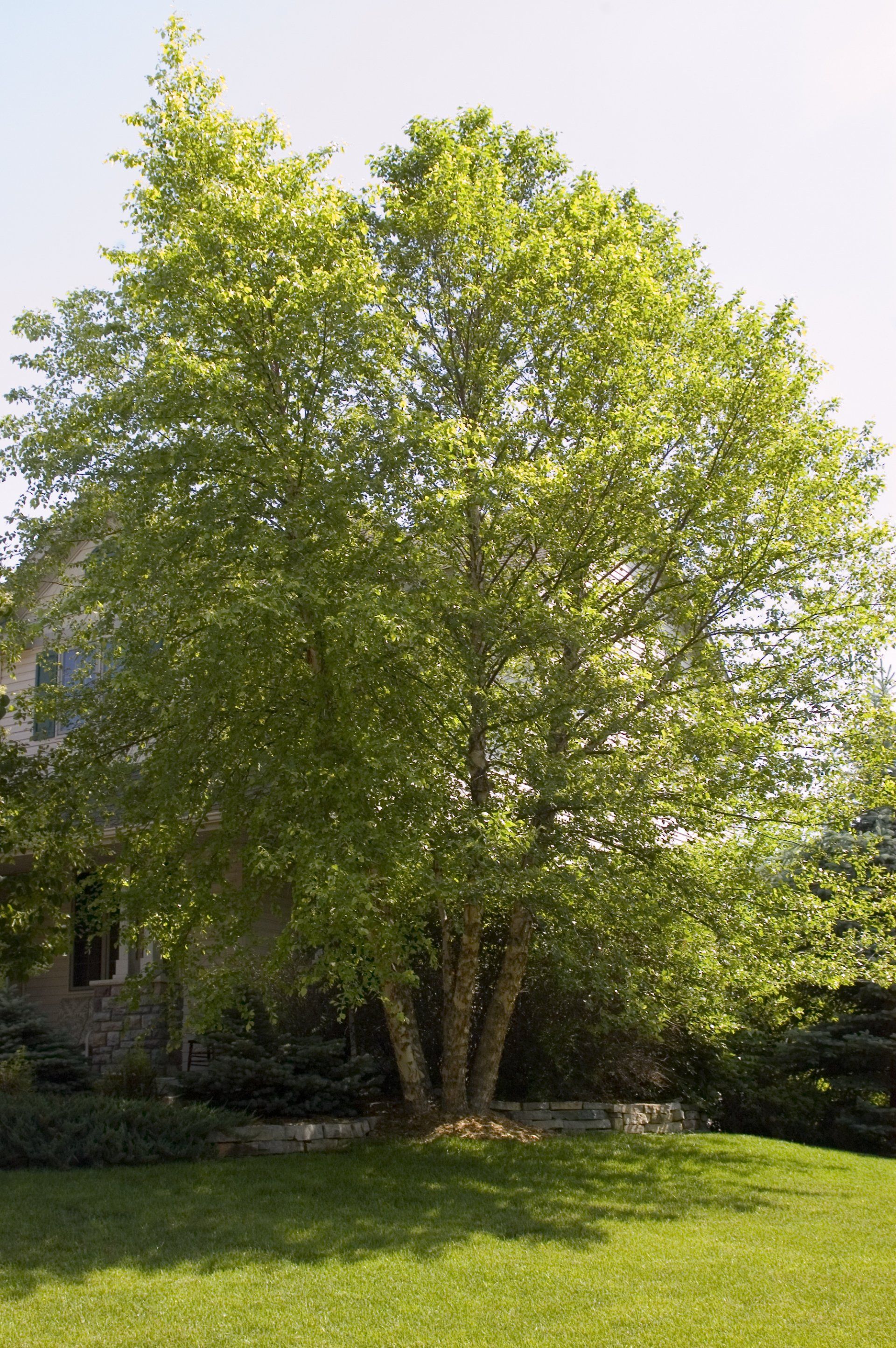 This vigorous grower has exfoliating bark that is lighter than river birch, ranging from tan to creamy white to parchment white. While it tolerates wet, poorly drained soils, it does well in upland soils, and is resistant to bronze birch borer. Clumps have three or more stems. Voted 2002 Urban Tree of the Year by the Society of Municipal Arborists.