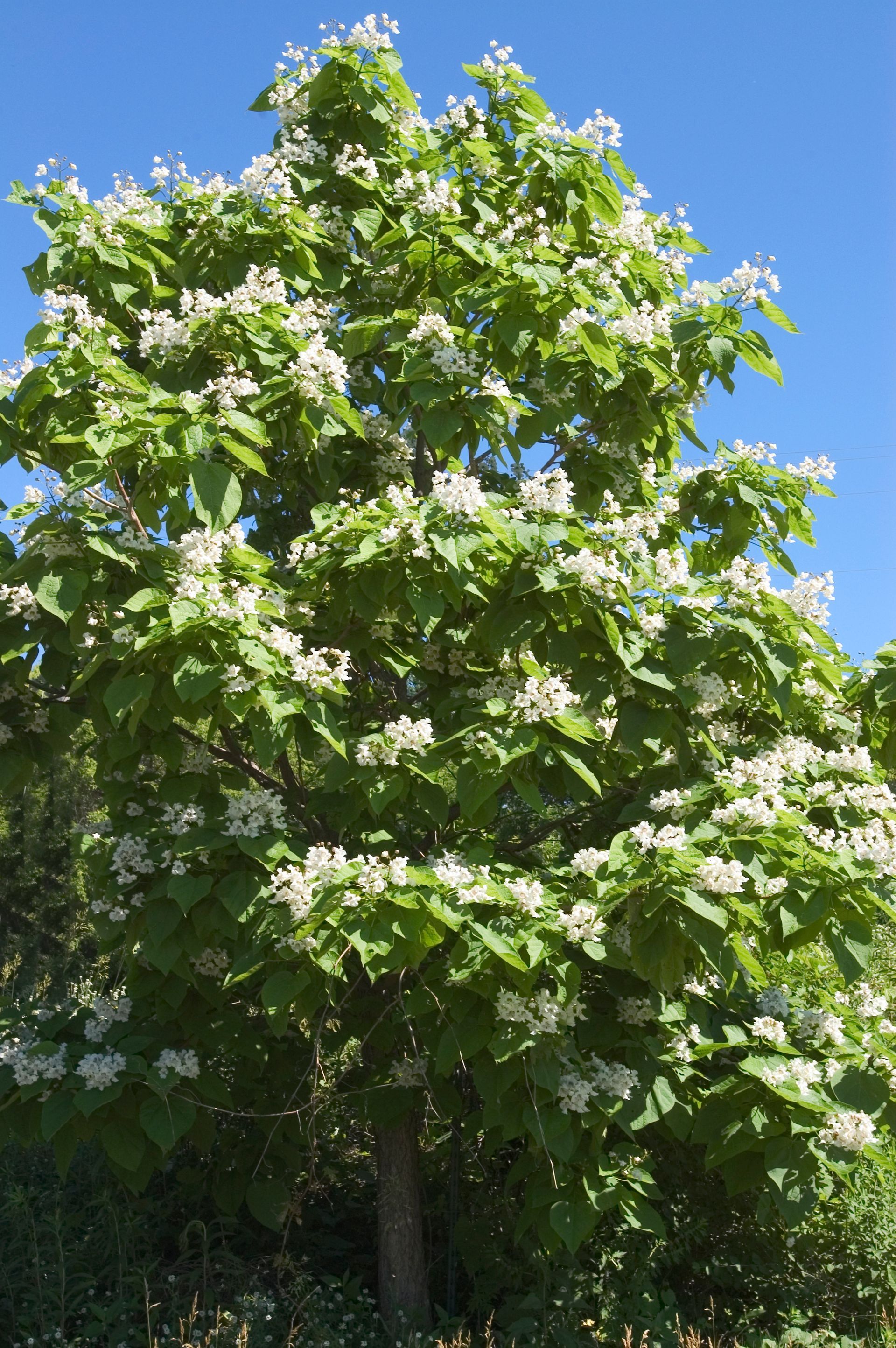 This fast growing tree has few branches at an early age. Once branched, ascending limbs are gnarled and twisted. In June, 2" long, tube-like white flowers appear in 4-8" panicles. Fruit is a long persistent pod. Great for xeriscapes, it is very tolerant and adaptable.